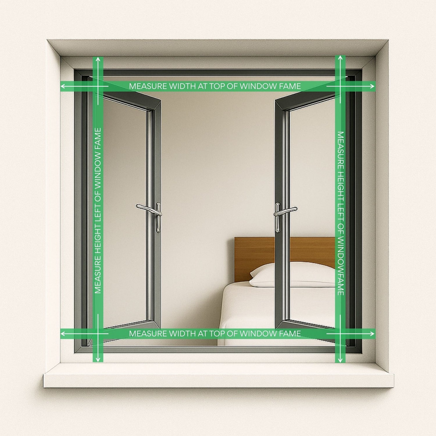 You will take your measurements on the inside of the frame, top & bottom width - left & right height. Ensure your measurements are in MM to the closest MM for a seamless fit.